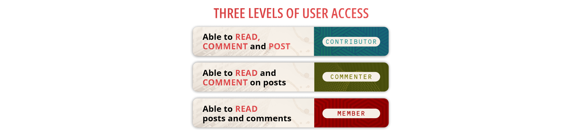 The platform has a look, feel, and functionality similar to LinkedIn or Twitter/ X, however, our Coffeehouse provides different levels of access for our three types of users: contributors, commenters, and members.