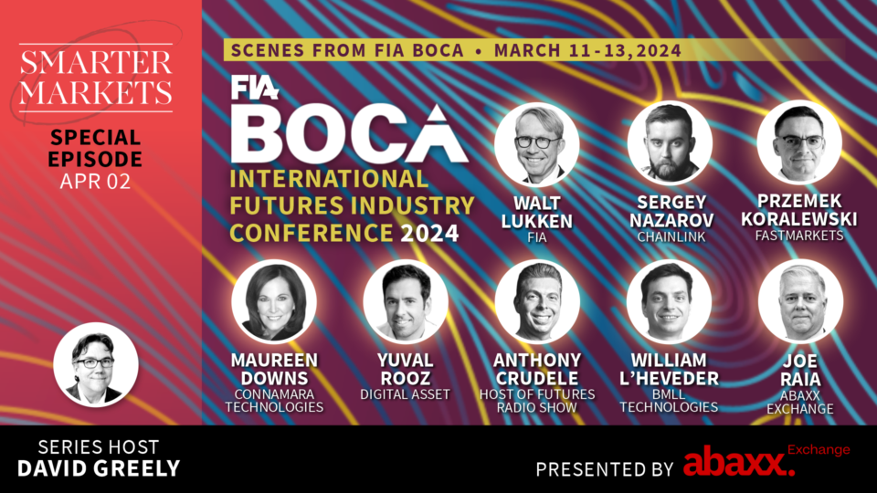During this March’s FIA Boca conference in Boca Raton, Florida, we partnered with the FIA to interview a wide-range of futures industry participants. SmarterMarkets™ host David Greely sat down with these guests to ask them how they see their role in the markets and to hear their views on the important developments and big issues being discussed at Boca this year. David also asked them about what they see as the big challenges and opportunities for the futures industry – and what we need to be doing to meet those challenges and seize those opportunities.